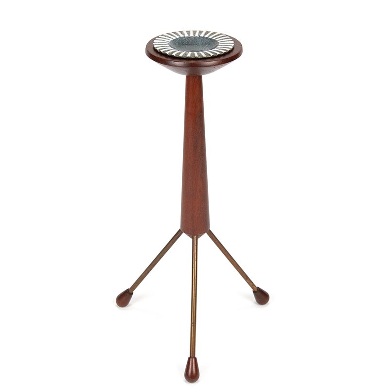 Special standing ashtray from the late fifties. Beautiful luxury object with earthenware ashtray from the Johgus Bornholm earthenware factory. The condition is good, some minimal traces of use, pottery is undamaged, see details. The dimensions are 53 cm high, the top has a diameter of 15 cm. The ashtray is 12.5 cm.