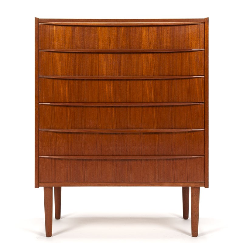 Danish chest of drawers from the mid sixties. Beautiful stylish model with long handle. The vintage chest of drawers has plenty of storage space in the 6 drawers. The condition is good considering the age, see details. The dimensions are 79.5 cm wide, 41.5 cm deep and 102.5 cm high.