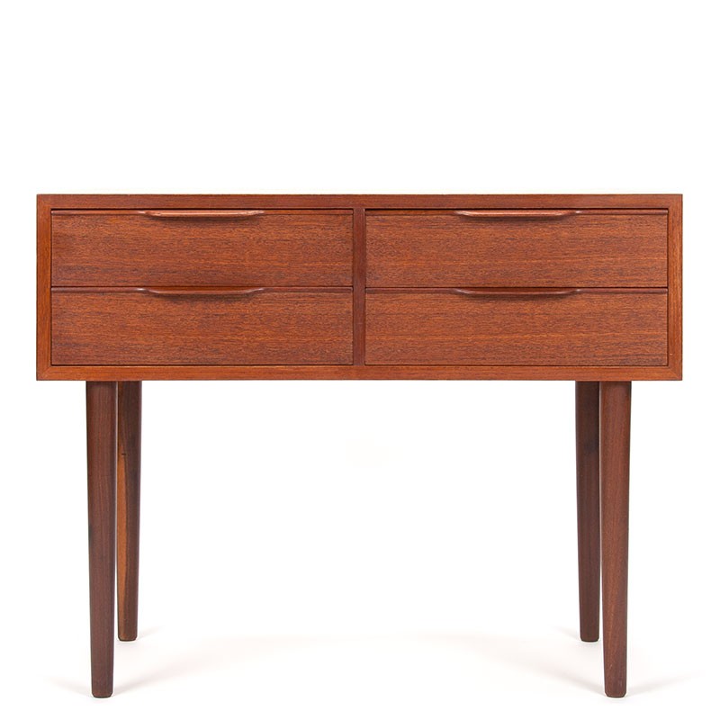 Danish chest of drawers from the mid-sixties. Nice slim model, the design is very similar to that of Kai Kristiansen. The cabinet has 4 drawers with an organic handle. The condition is good, see details. The dimensions are 75 cm wide, 34 cm deep and 60 cm high.