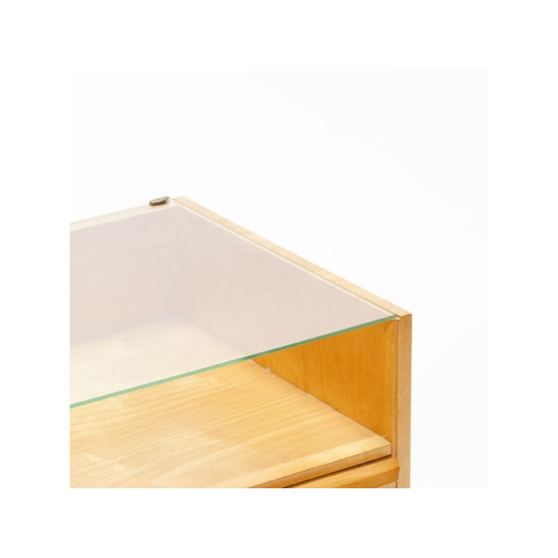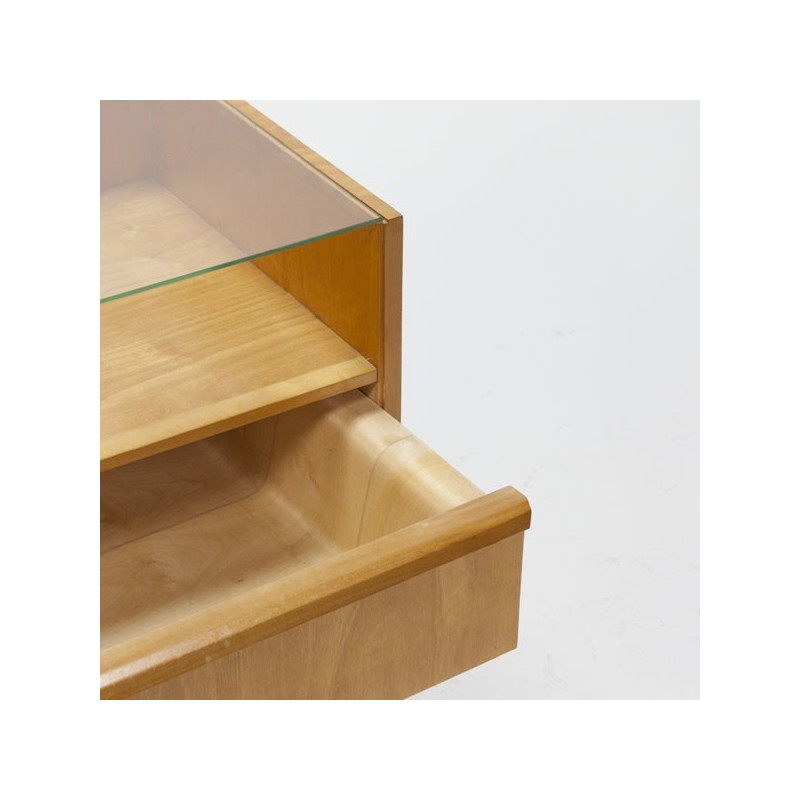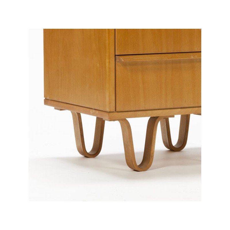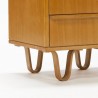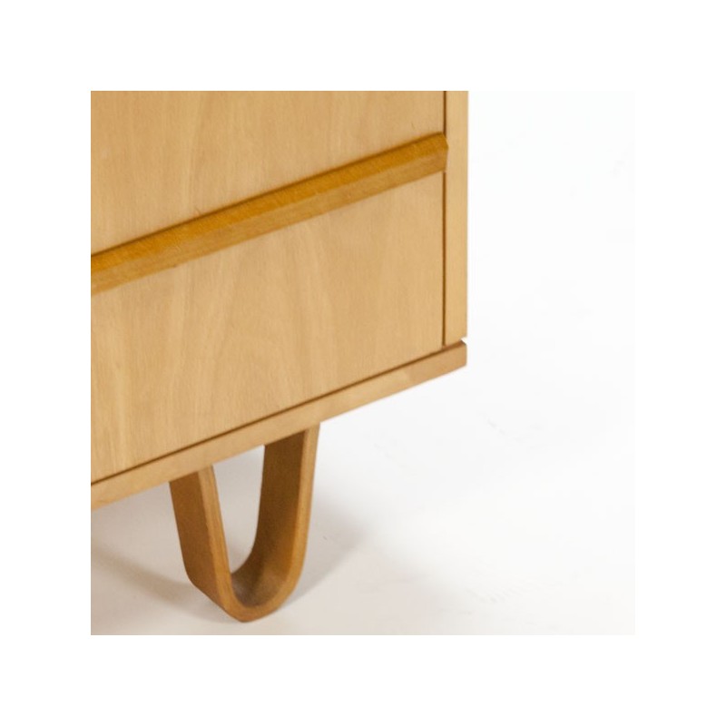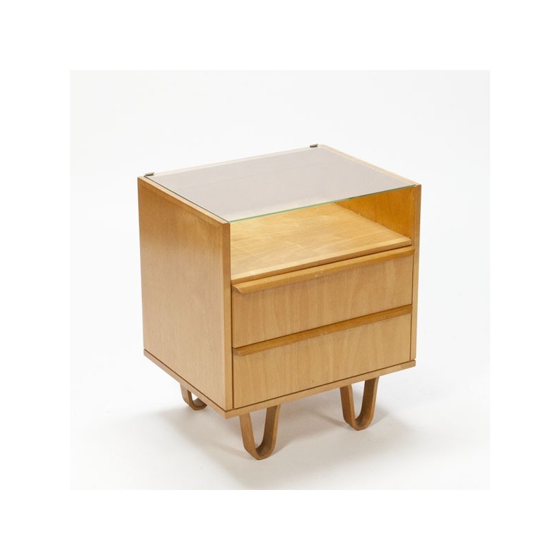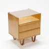 Beautiful vintage Dutch design birch bedside cabinet. Part of the CB series, designed by Cees Braakman for Pastoe in 1951-1952. The cabinet has the wonderful and beautiful plywood feet which are characteristic for this series. Marked with the manufacturer's stamp on the back. The condition is good, see detailed pictures. The dimension is 57 cm H/ 49 cm W/ 38 cm D.