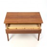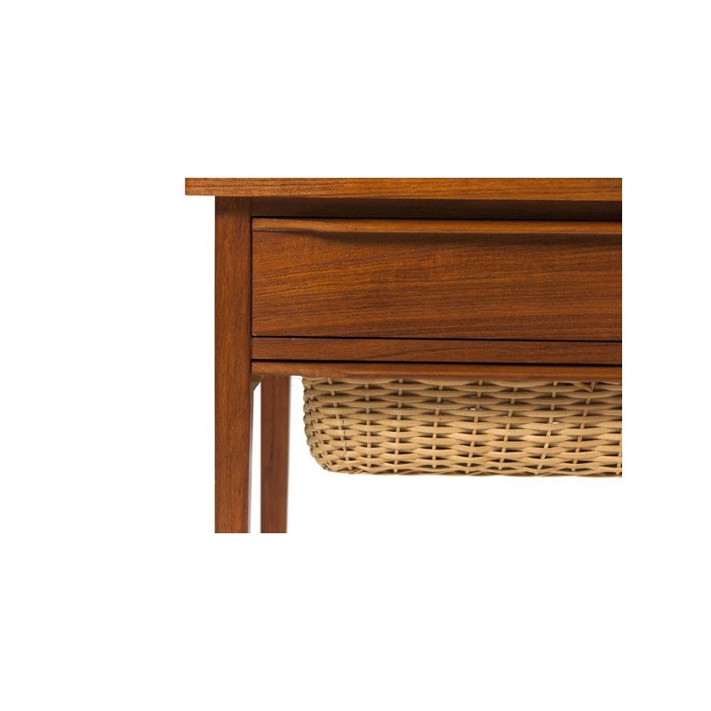 Design cabinet from Denmark from the sixties. The small cabinet has a teak drawer and below a drawer made of wicker. The condition is good considering the age, see detailed pictures. The dimension is 68.5 cm L / 39 cm W / 48 cm H.