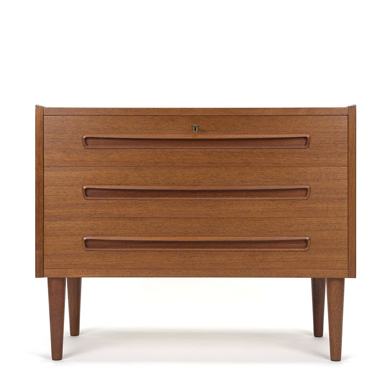 Vintage chest of drawers made of teak. The chest of drawers is made in Denmark and made with great attention to detail, giving the chest of drawers a luxurious look. The condition is good, only minimal traces of use, see details. The dimensions are 79 cm long, 39.5 cm deep and 64 cm high.