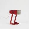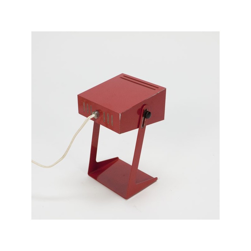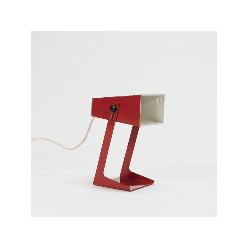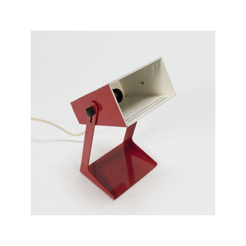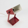 Metal table lamp red. The lamp is adjustable in height. The condition is good, see also the detailed pictures. The size is 22 cm high and 15 cm wide.