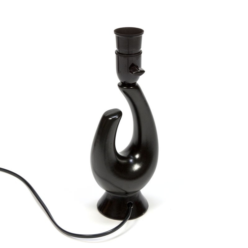 Vintage lamp base of pottery, black in color, from the fifties. Beautiful decorative design, original fitting which is also the light switch. The condition is good considering the age, undamaged, see detailed pictures. The dimensions are 27.5 cm high (including fitting).