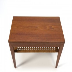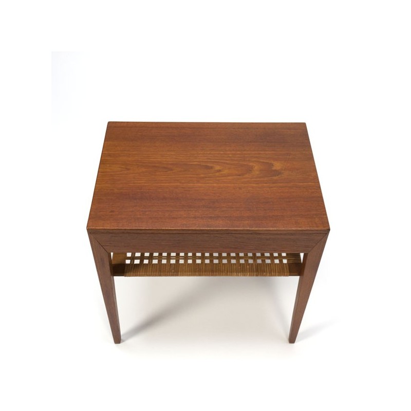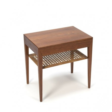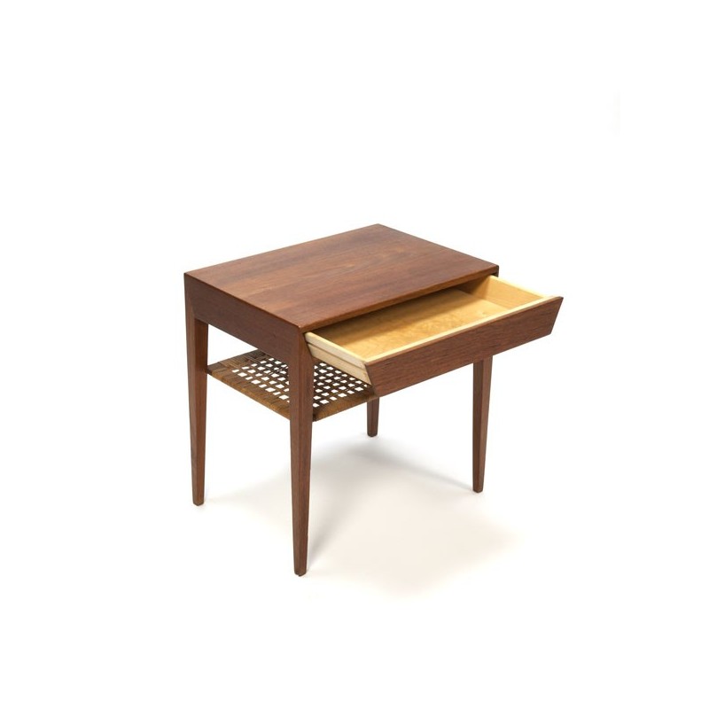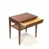 Vintage side table with drawer. The table is designed by Severin Hansen Jr.. and executed in teak and marked at the bottom. The table is made in Haslev furniture fabric, Denmark. The condition is good considering the age, see the detail photos. The dimension is 49.5 cm L / 35 cm W / 50 cm H.