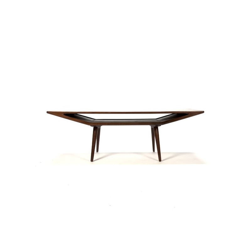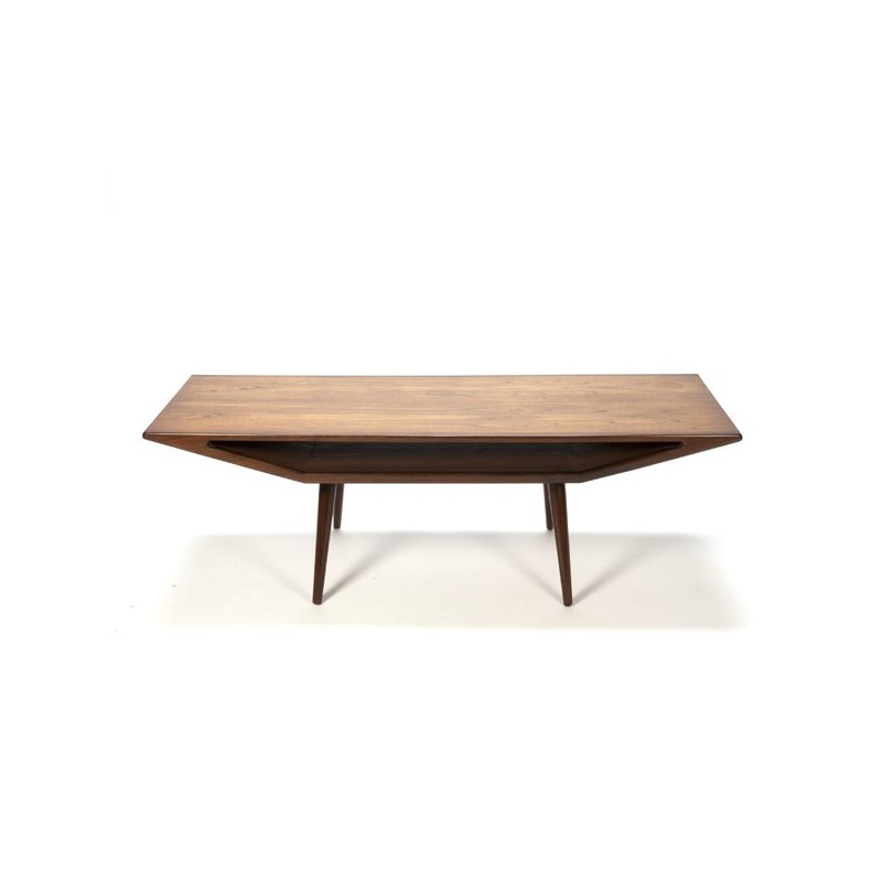 Vintage design coffee table, probably designed by Gunnin Omann (model 100). The coffee table has a beautiful design. The condition is quite good, there are some traces of use on the sheet (see detailed pictures). The dimension is 140 cm L / 50 cm W / 46 cm H.