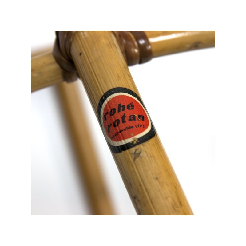 Vintage side table from the Dutch brand Rohe Rotan. Made of bamboo with a glass top. The condition is good, see also detailed pictures. The dimension is 50 cm in diameter and 36.5 cm in height.