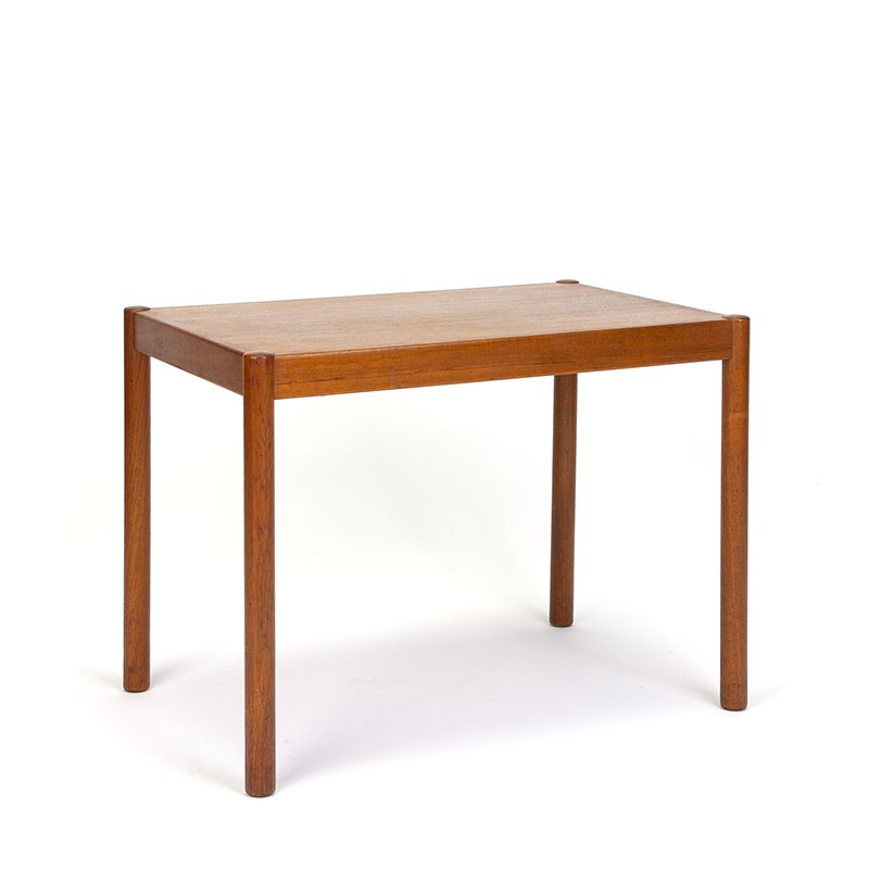 Teak Danish vintage side table. The side table is from the late sixties and has a rectangular model with round legs. The condition is good, only minimal traces of use, see details. The dimensions are 58.2 cm long, 38 cm wide and 45 cm high.