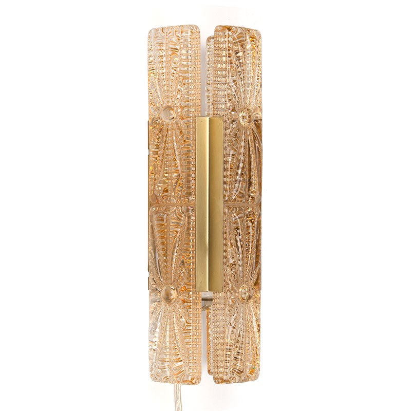 Mid-Century wall lamp by the Danish brand Vitrika. Beautiful lamp type Aladdin lamps no. 1001. The lamp has a brass-colored fixture, the glass is by the Swedish brand Orrefors. The condition is good, glass is undamaged, see details. The dimensions are 30 cm high, 10 cm wide and 9 cm deep.