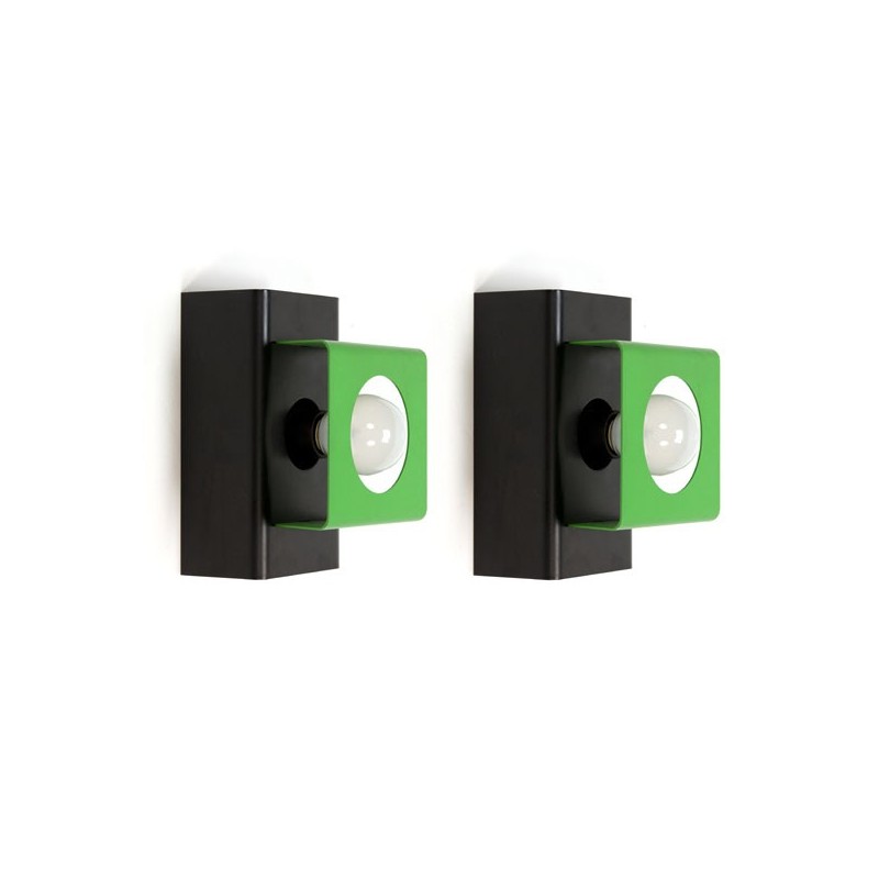 Vintage wall lamps from the seventies, set of 2. The color is bright green with black. The condition is good considering the age, see the detail photos. The dimension is 10.5 cm W / H 15.5 cm / 10.5 cm D.
