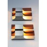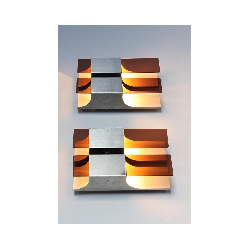Pair of vintage design wall lamps from the 1970's. The lamps are brushed metal with platic smoked glass.