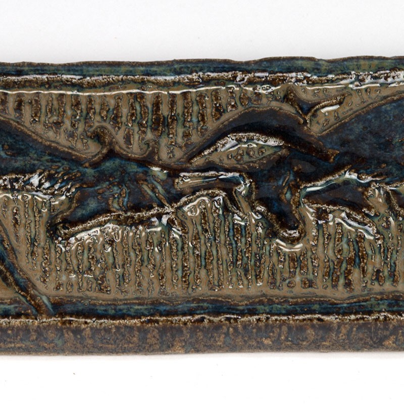 Vintage wall tile from 1961. Special tile from the Søholm ceramics factory, designed by Svend Aage Jensen. The tile has an image of 2 reindeer. The condition is good, undamaged, see details. The dimensions are 40.5 cm wide, 12.5 cm high and 2.2 cm deep.
