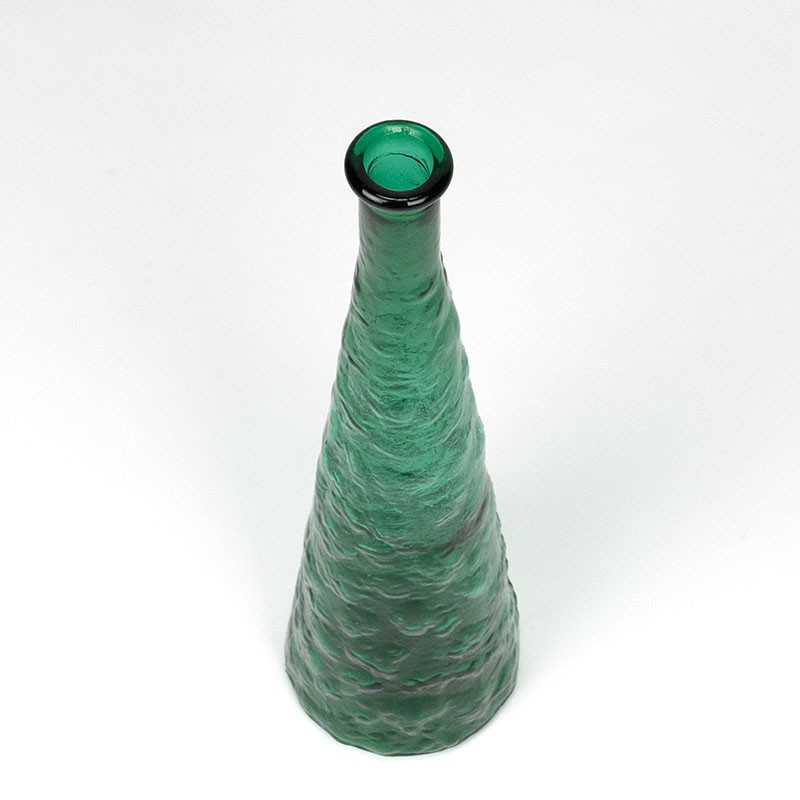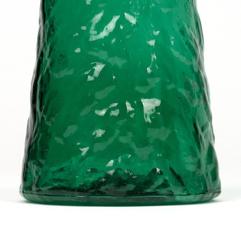 Glass vintage carafe/bottle by Rossini Empoli, Italy. Nice green color, stop missing. The condition is good, undamaged, see details. The dimensions are 41 cm high and 11 cm in diameter.