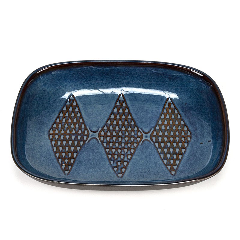 Danish vintage design bowl. Designed by Einar Johansen for Søholm Stentøj. The bowl has model number 3332 2. The condition is good, undamaged, see details. The dimensions are 38.5 cm long, 28.5 cm wide and 7 cm high.