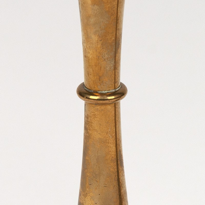 Danish vintage set of 2 candlesticks from the sixties. The set of 2 brass Hyslop candlesticks has a stylish design. The condition is good considering the age, only minimal traces of use (spots), see details. The dimensions are 17.5 cm high and 4.5 cm in diameter.