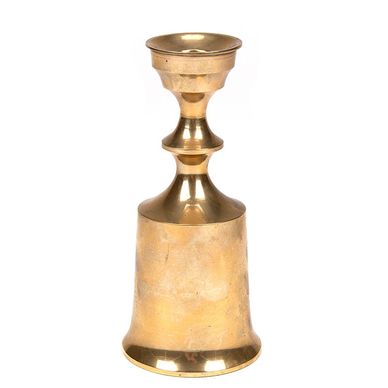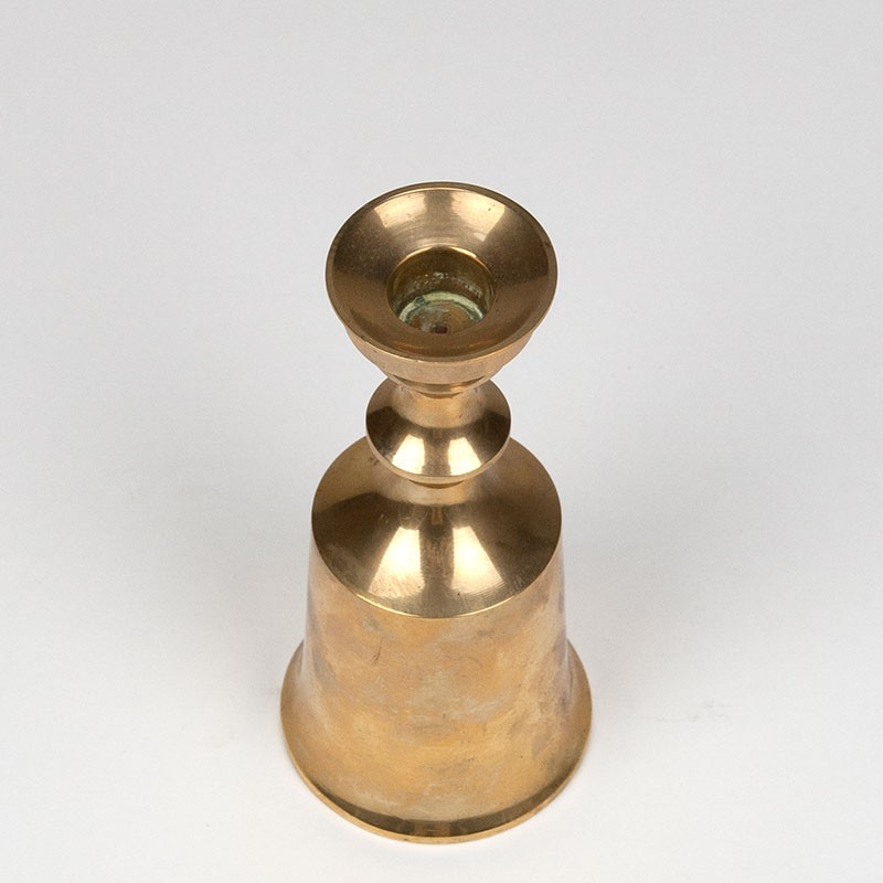 Vintage Danish brass candlestick from the sixties. The model resembles a design by Jens Quistgaard. Beautiful model with wide base. The condition is good, see details. The dimensions are 17.5 cm high and 8 cm in diameter.