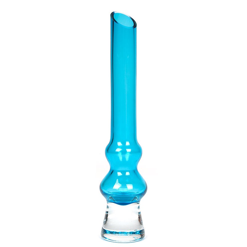 Vintage vase from the sixties/seventies in a bright blue color. Special design with an obliquely cut opening. The condition is good, undamaged, see details. The dimensions are 39.9 cm high and 8 cm in diameter.