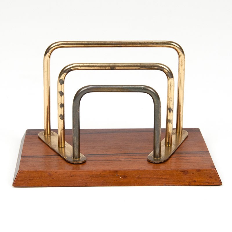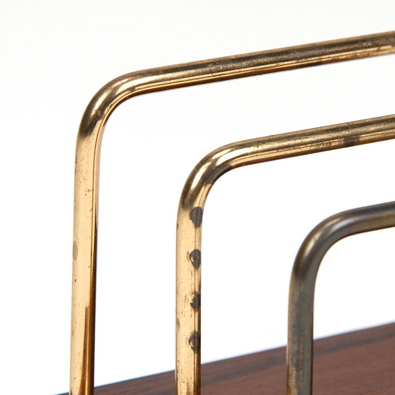 Vintage letter holder from the mid sixties. Beautiful luxury version in rosewood and brass. The condition is good considering the age, some spots on the brass, see details. The dimensions are 14 cm long, 9 cm deep and 8.5 cm high.
