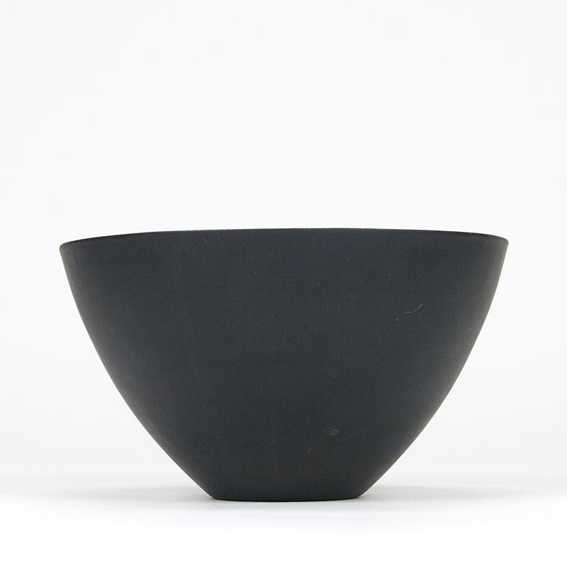 Danish design bowl designed by Herbert Krenchel for Krenit, Denmark in the 1960s. The vintage bowl is enamel and has a glossy orange inside and is matte black on the outside. The bowl is marked on the bottom. The condition is good, minimal signs of use, see the detailed photos. The size is 25 cm in diameter and 14 cm high