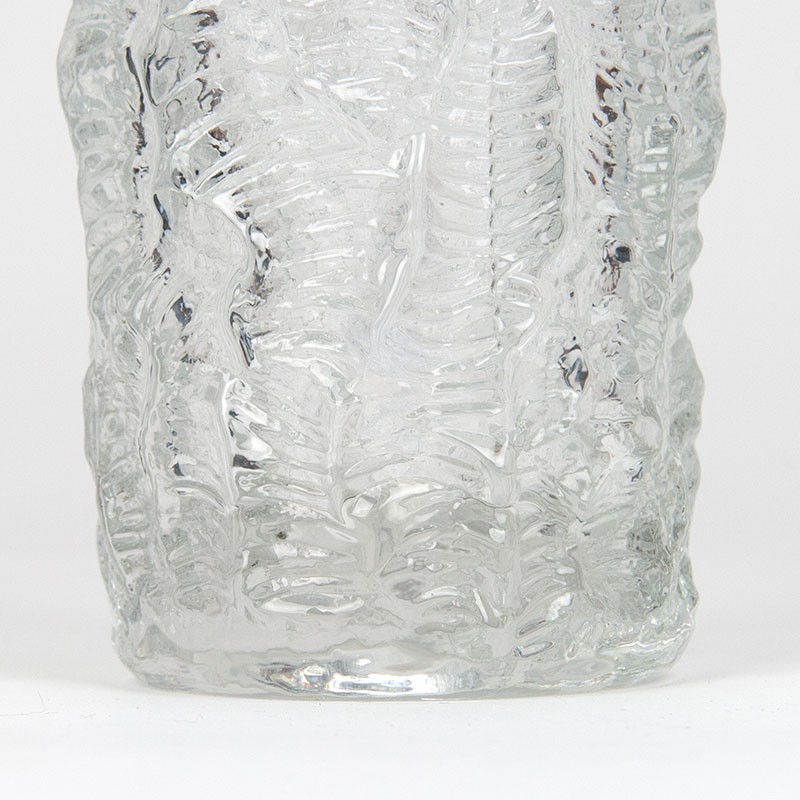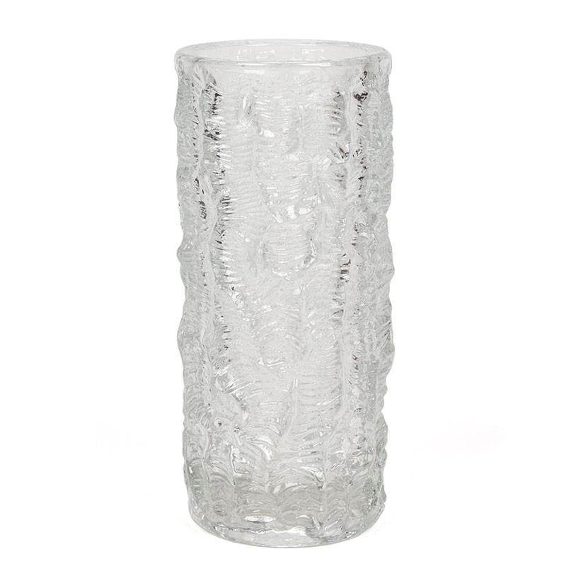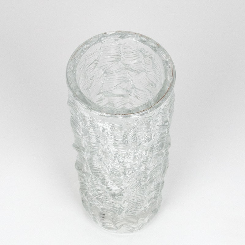 Decorated vintage glass vase, most likely from Sweden, period 1960s. Beautiful cylinder designed model. The condition is good, undamaged, see details. The dimensions are 10 cm in diameter and 22.8 cm high.
