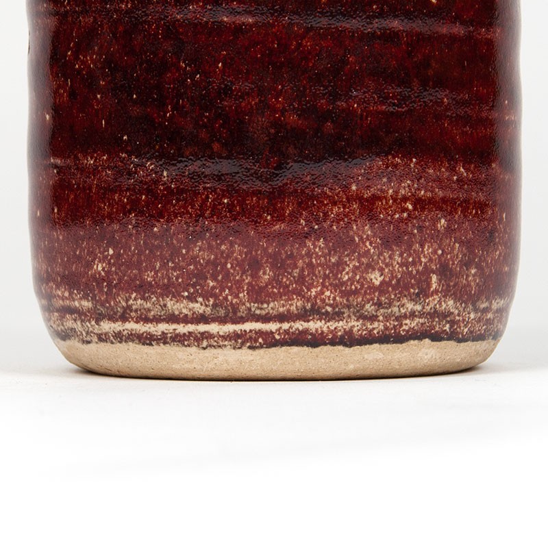Large model ceramic vase from the studio of Jaap Ravelli. The vase has a beautiful deep color and is marked on the bottom: Ravelli 577. The condition is good, undamaged, see details. The dimensions are 44.5 cm high and 13.5 cm in diameter.