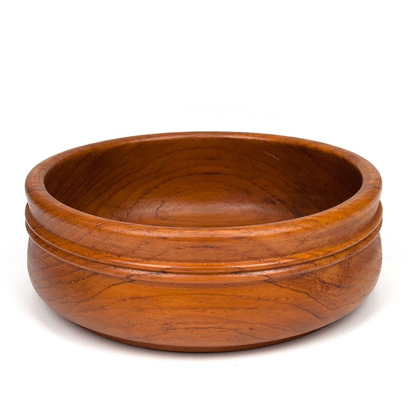 Teak round serving bowl, with beautifully shaped edge. The vintage bowl comes from the sixties/seventies. The condition is good, see details. The dimensions are 20 cm in diameter and 7.5 cm high.