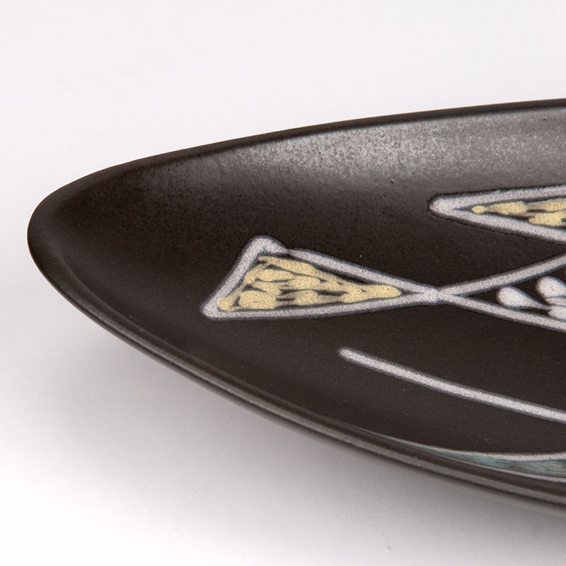 Mid-Century Danish design bowl of ceramic. The bowl is a design by Holm Sørensen and Svend Aage Jensen, the series is called Burgundia. Marked on the bottom Søholm Bronholm. The condition is good, undamaged, see details. The dimensions are 40.5 cm wide, 15 cm deep and 6.5 cm high.