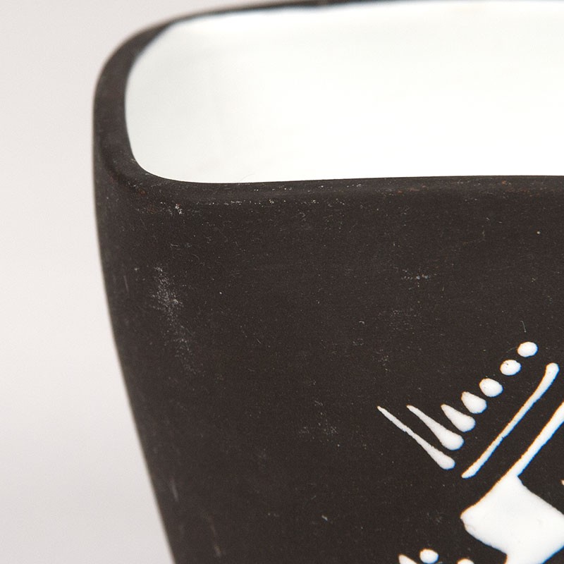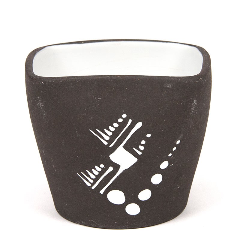 Small model flower pot from the fifties/sixties. Nicely designed and decorated. The condition is good, undamaged, see details. The dimensions are 10 x 10 cm and 8.5 cm high.