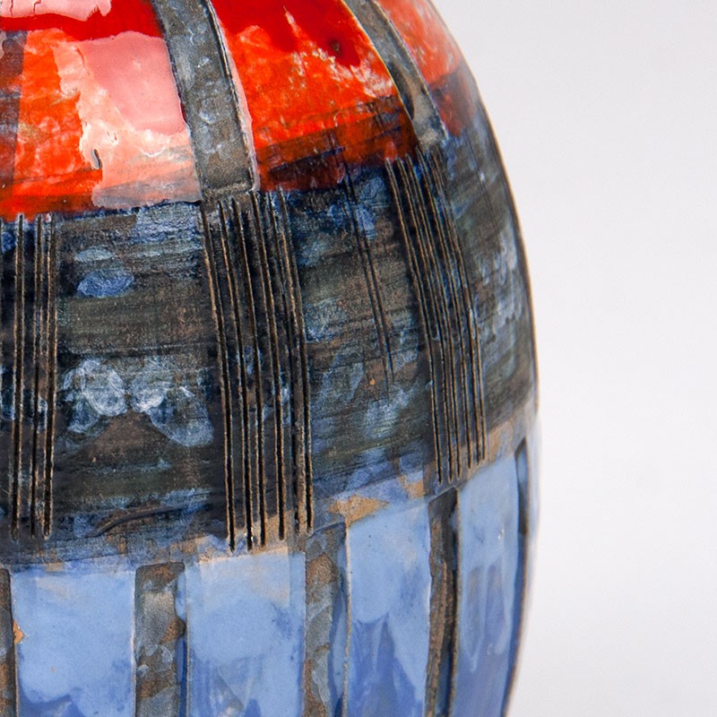 Italian vintage design vase. The vase is a design by Fratelli Fanciullacci, marked on the bottom. Beautiful vase in bright colors. The condition is good, no chips, see details. The dimensions are 19.5 cm high, 11.5 cm in diameter and 13 cm wide (incl. handle).