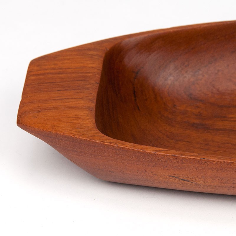 Teak bowl from the fifties/sixties. From Denmark. Beautifully designed model. The condition is good, see details. The dimensions are 38 cm long, 15 cm wide and 4 cm high.