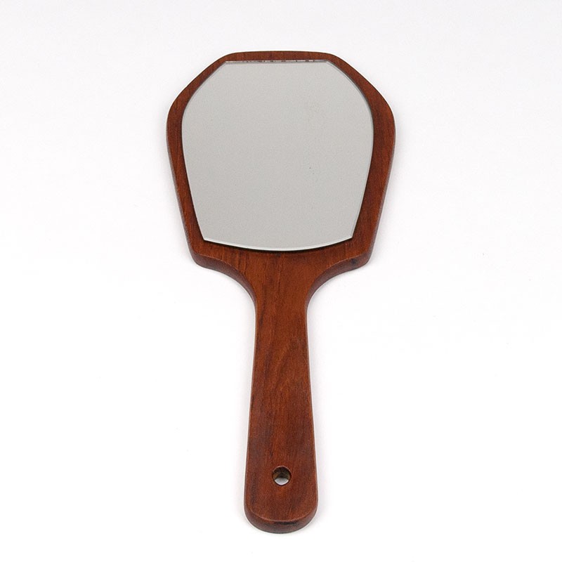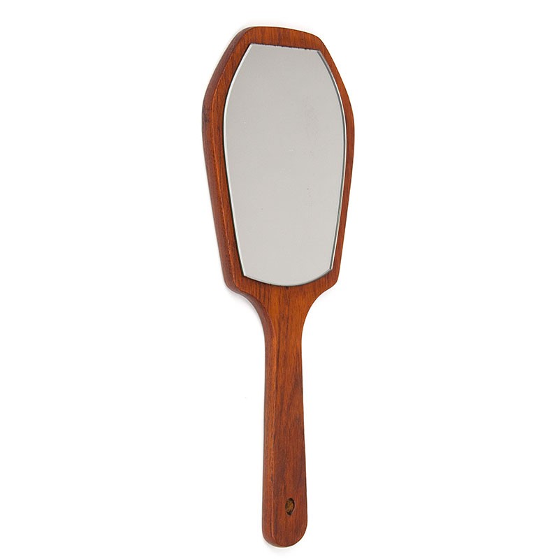 Danish hand mirror from the period 1950-1969. Beautiful stylish model, made of teak. The condition is good, see details. The dimensions are 12.5 cm wide and 32 cm high.