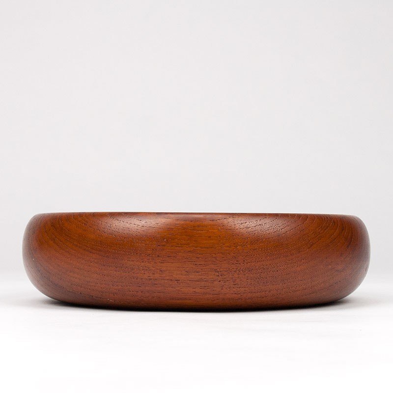 Mid-Century serving dish from Denmark. Beautiful low model, made of teak. The condition is good, see details. The dimensions are 23 cm in diameter and 6 cm high.