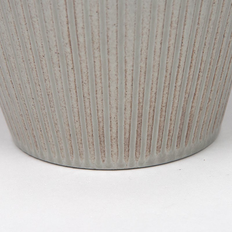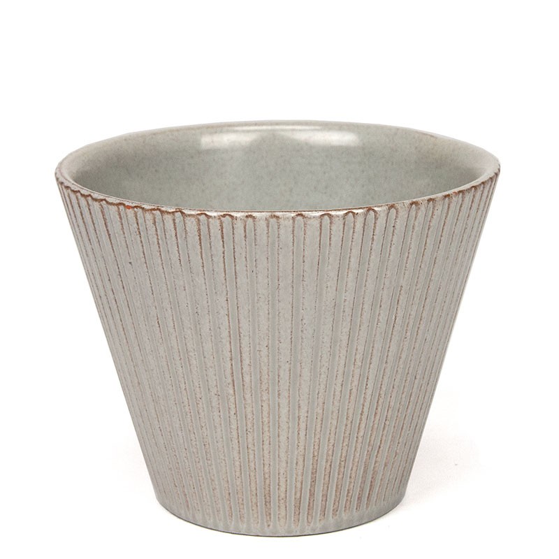Dutch earthenware flower pot from the fifties/sixties. Beautiful grey colour. From the ADCO earthenware factory. The condition is good, undamaged, see details. The dimensions are 13.5 cm in diameter and 11 cm high.