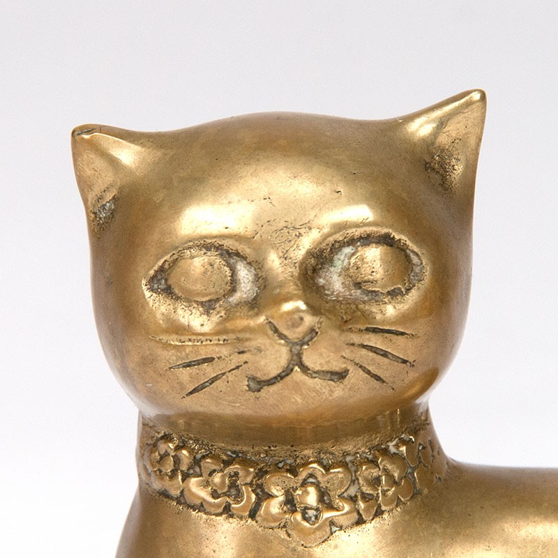 Brass vintage statue of a cat. Nice decorative piece. The condition is good considering the age, see details. The dimensions are 11.5 cm high, 9 cm long and 5 cm deep.