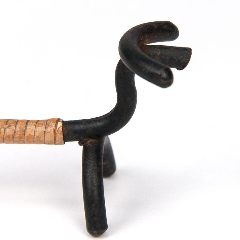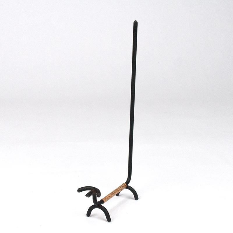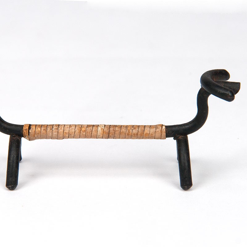 Vintage decorative dog, designed by Laurids Lønborg. Metal wrapped with rattan. The condition is good considering the age, see details. The dimensions are 10.5 cm long, 3.5 cm wide and 22.5 cm high.