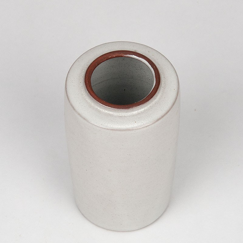 Earthenware vase from the sixties. Slim model. Not marked. The condition is good, undamaged, see details. The dimensions are 11 cm high and 6 cm in diameter.