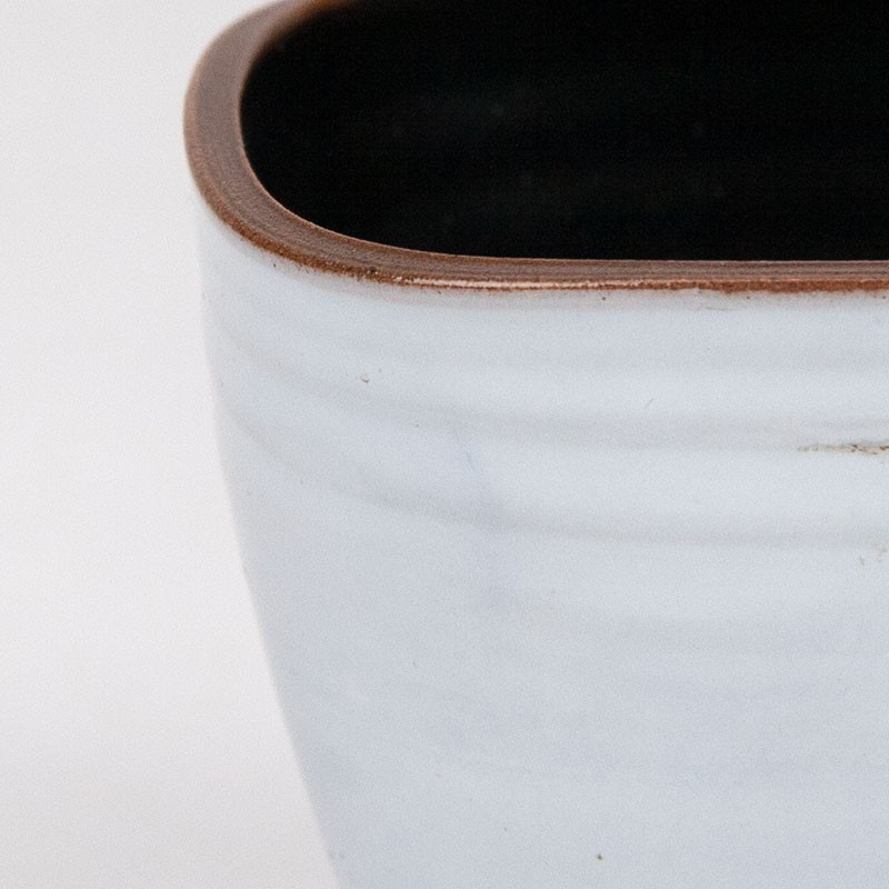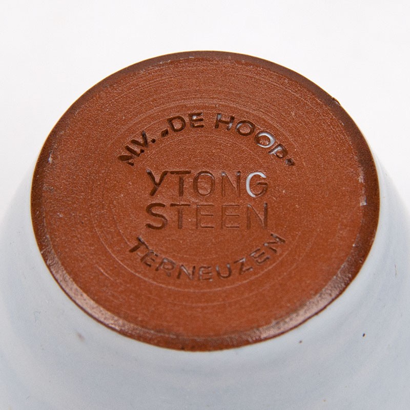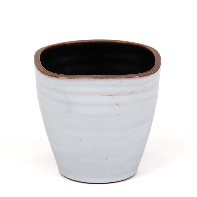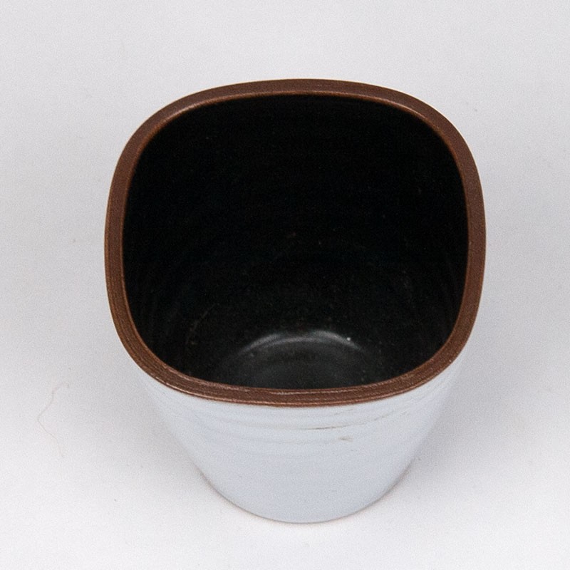 Miniature ceramic pot, white glazed outside and black inside. Marked on the bottom. The condition is good, undamaged, see details. The dimensions are 6.3 cm in diameter and 6 cm high.