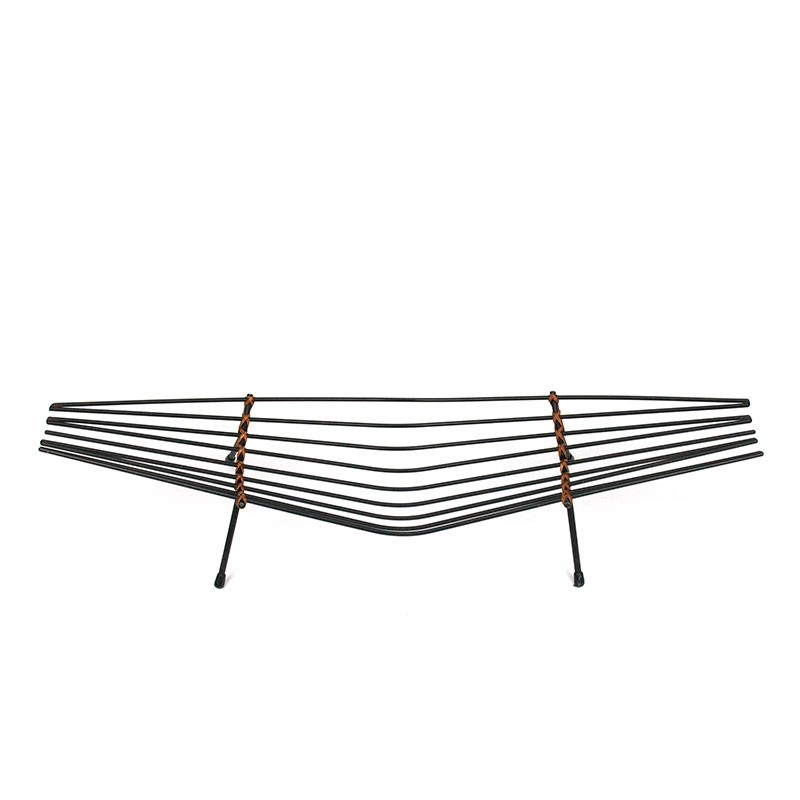 Vintage fruit bowl from 1950-1959. Beautiful, elongated design, made of black coated metal wire. The condition is good, see details. The dimensions are 53.5 cm long, 15.5 cm wide, and 10.5 cm high.