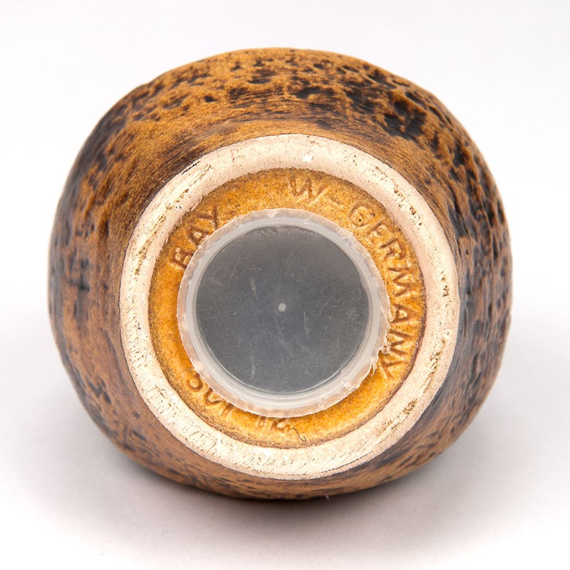 Ceramic piggy bank, shaped like an owl. This vintage piggy bank is made by the German brand Bay and is marked and numbered on the bottom. The condition is good, undamaged; see details. It measures 12.2 cm high, 8.5 cm wide, and 8 cm deep.