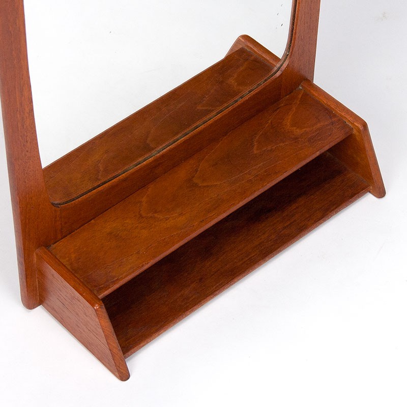Mid-Century mirror from the 1960s, originally from Denmark. The vintage mirror is made of teak and has an open compartment. It's in good condition, with only minor signs of wear; see details. It measures 33 cm wide, 53.5 cm high, and 12 cm deep.