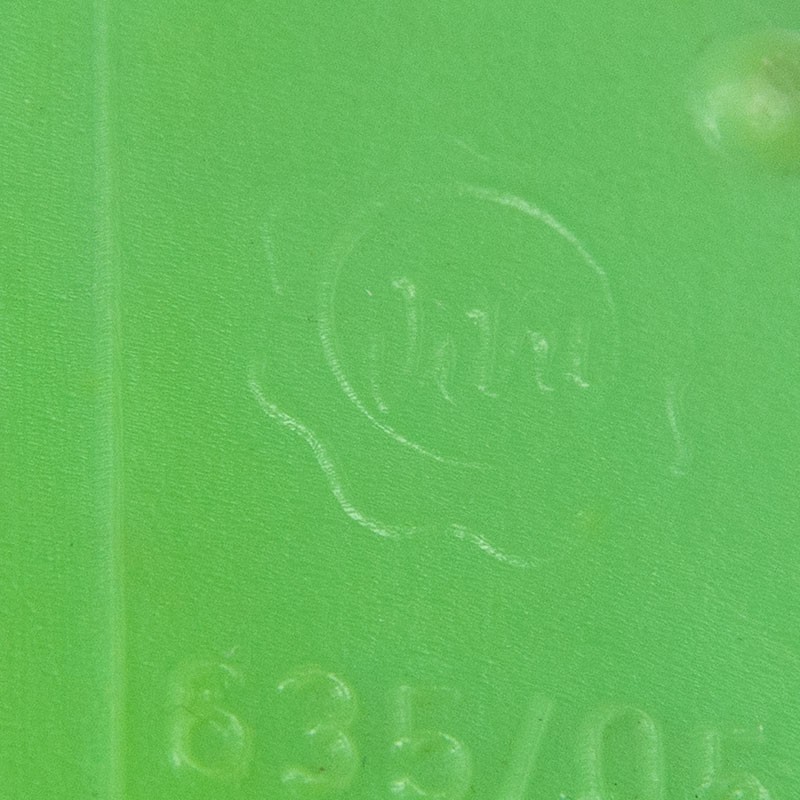 Small green watering can from the German brand Vitri, model 636/05. The can is green in color and has an orange texture. Suitable for 0.5 liters of water. It is in good condition, see details. It measures 26 cm wide and 10 cm in diameter.