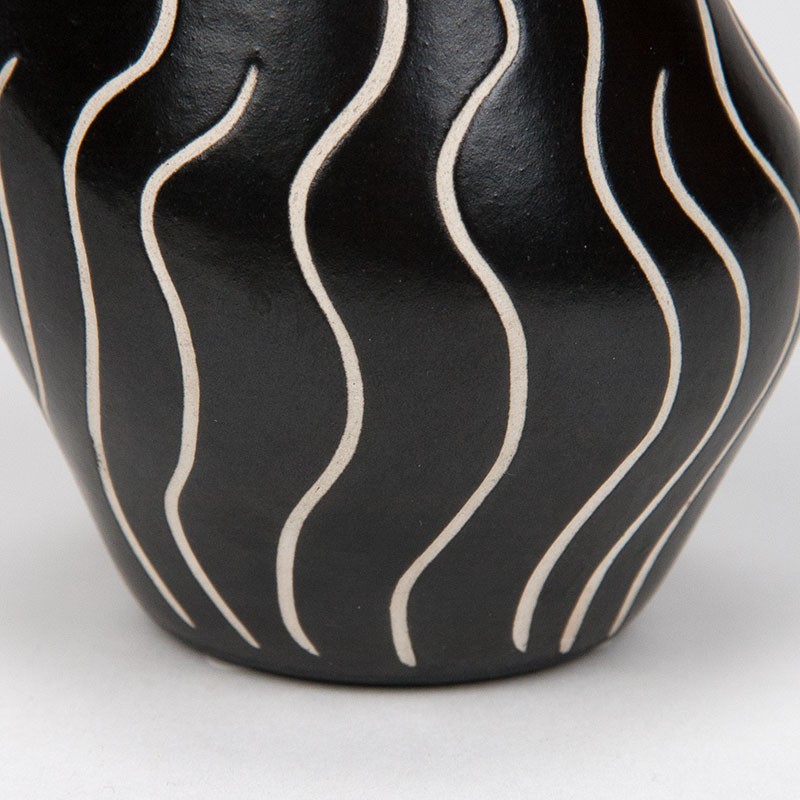 Danish vintage vase, small model. Made by Elisabeth Loholt, marked and numbered on the bottom. The condition is good and undamaged, see details. The dimensions are 7 cm wide, 6 cm deep, and 13.5 cm high.