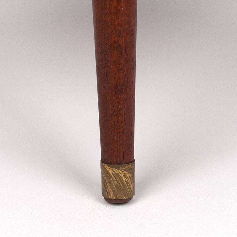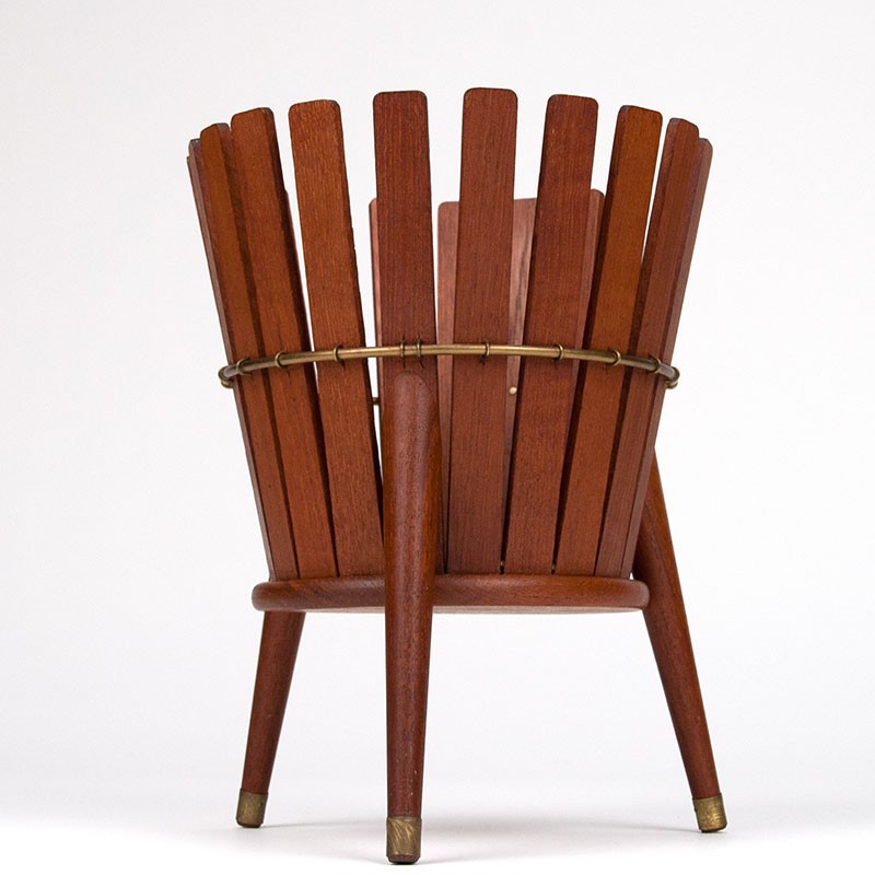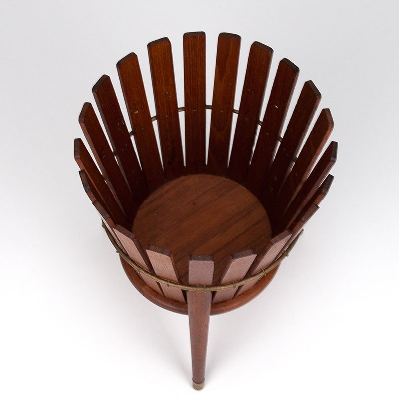 Danish Mid-Century planter on three legs with a small brass detail in teak. Originating from the 1950s, Denmark. A particularly stylish piece. The condition is good, with minimal signs of wear; see details. The dimensions are 21.3 cm in diameter and 27.5 cm high.