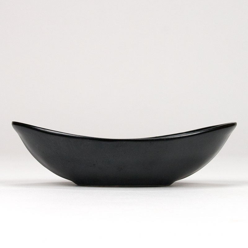 Ceramic bowl/vase for fresh or dried flowers. This vintage bowl dates from the 1950s and could easily be made in the Zenith ceramics studio. It is in good, undamaged condition. The dimensions are 19 cm long, 9.5 cm wide, and 5.2 cm high.