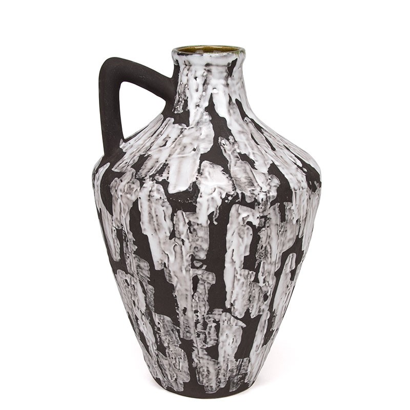 Earthenware vase from the period 1965-1975, West Germany. Beautiful jug model decorated with white glaze. The condition is good and undamaged. The dimensions are 22 cm in diameter and 32 cm high.