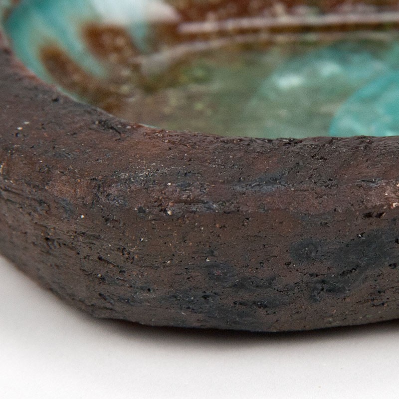 Vintage earthenware ashtray by Dutch artist Pieter Groeneveldt. Marked on the bottom. It is in good, undamaged condition; see details. It measures 14 cm long, 10 cm deep, and 2.5 cm high.