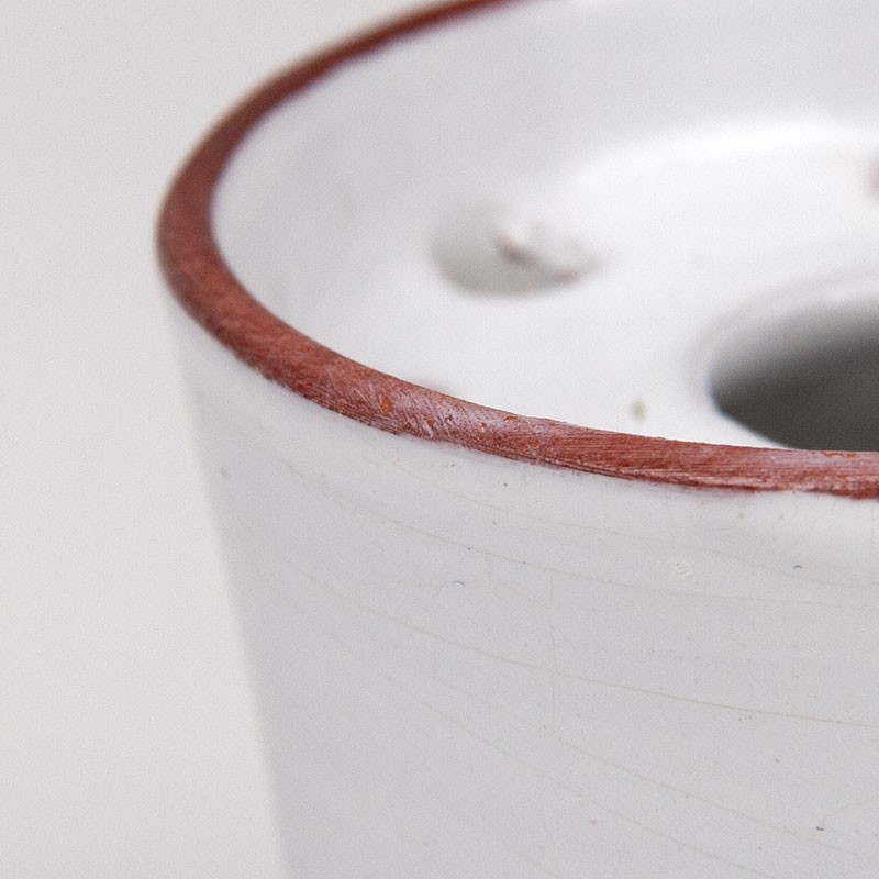 Earthenware flower holder, small model. Made in the Utrecht ceramics factory Nagtegaal. Beautiful vintage piece. The condition is good and undamaged; see details. The dimensions are 8 cm in diameter and 7 cm high.