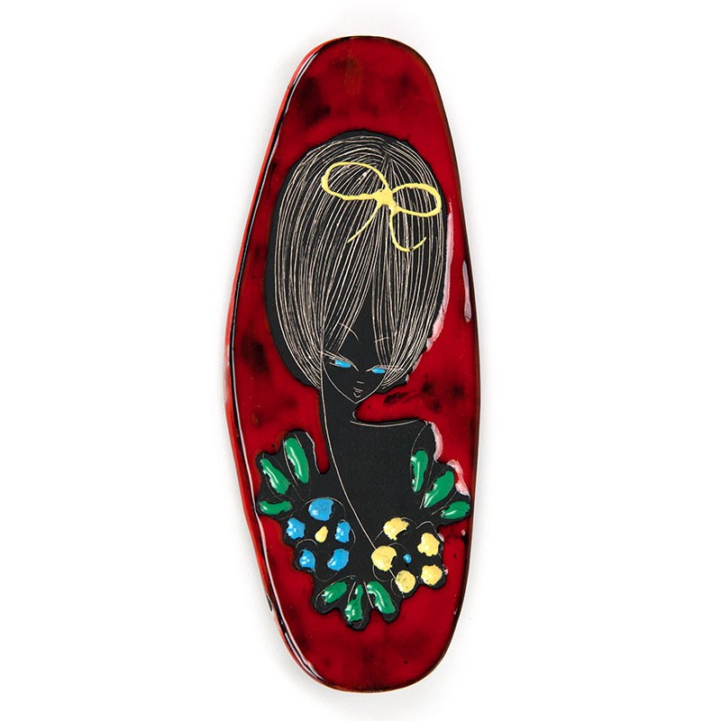 Wall tile with an image of a lady. This vintage tile dates from the 1950s/1960s and comes from San Marino. It is in good, undamaged condition; see details. It measures 10 cm wide and 23 cm high.
