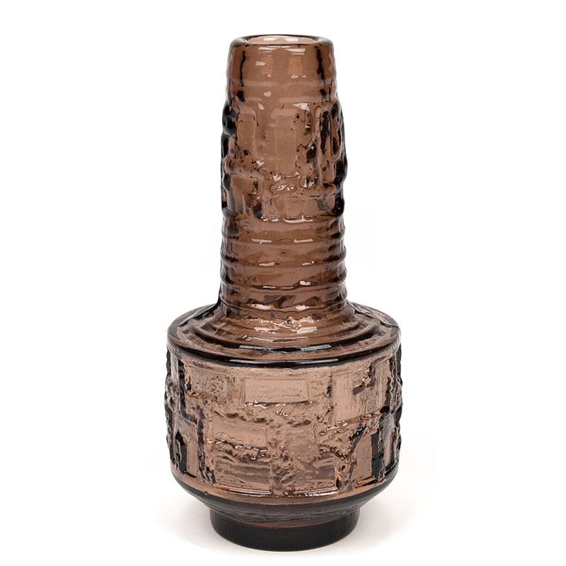Swedish Mid-Century design vase, designed by Göte Augustsson and released by Ruda Glasbruk. This vintage vase is made of a special brown-tinted glass. It is in good, undamaged condition; see details. It measures 10.5 cm in diameter and 23.5 cm high.