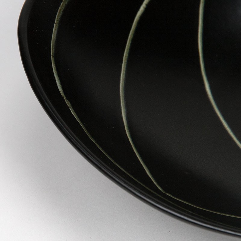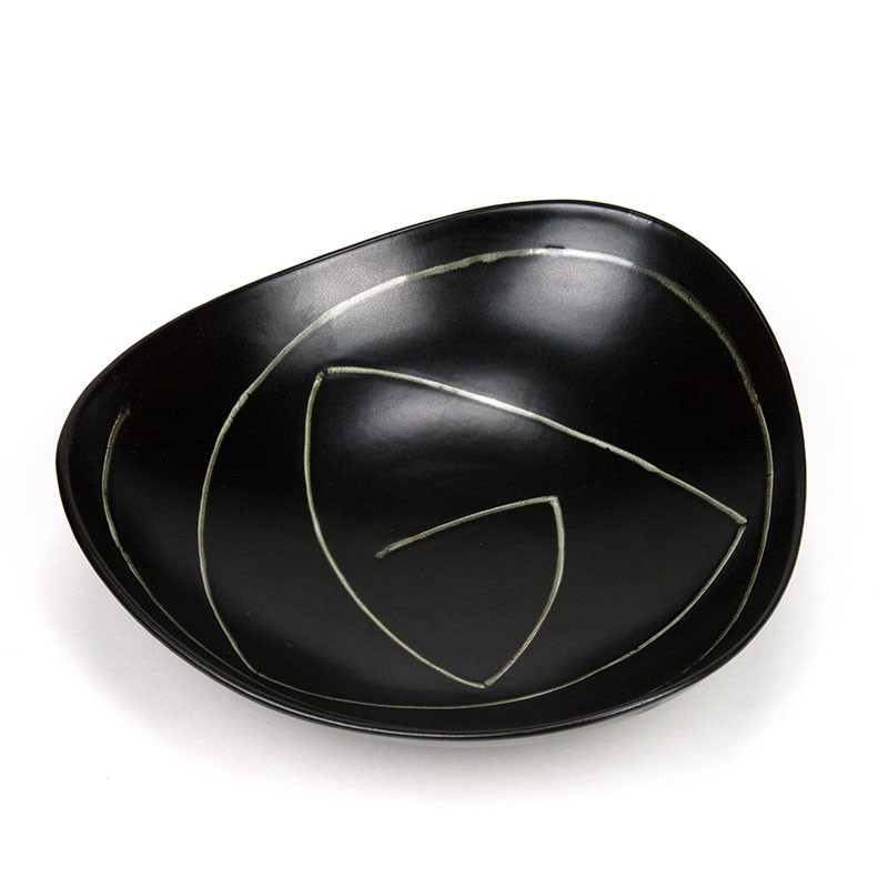 Swedish design ceramic bowl from the 1960s. Designed by Lillemor Mannerheim as part of the Labyrinth series. It is in good, undamaged condition; see details. The dimensions are 26 cm wide, 25.5 cm deep, and 7 cm high.
